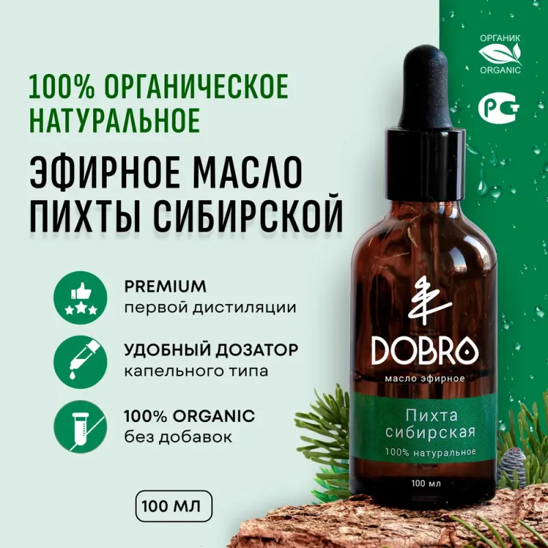 Эфирное масло из молодой хвои Сибирской пихты— 100% чистое, органическое, неразбавленное без спирта и добавок. С оригинальной сибирской пихтовой ветвью внутри. Пластиковый флакон с носиком дозатором, 10мл.