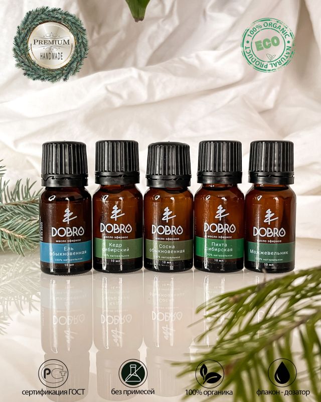 Набор эфирных масел 5х10мл (ель, кедр, сосна,пихта, можжевельник), премиум 50